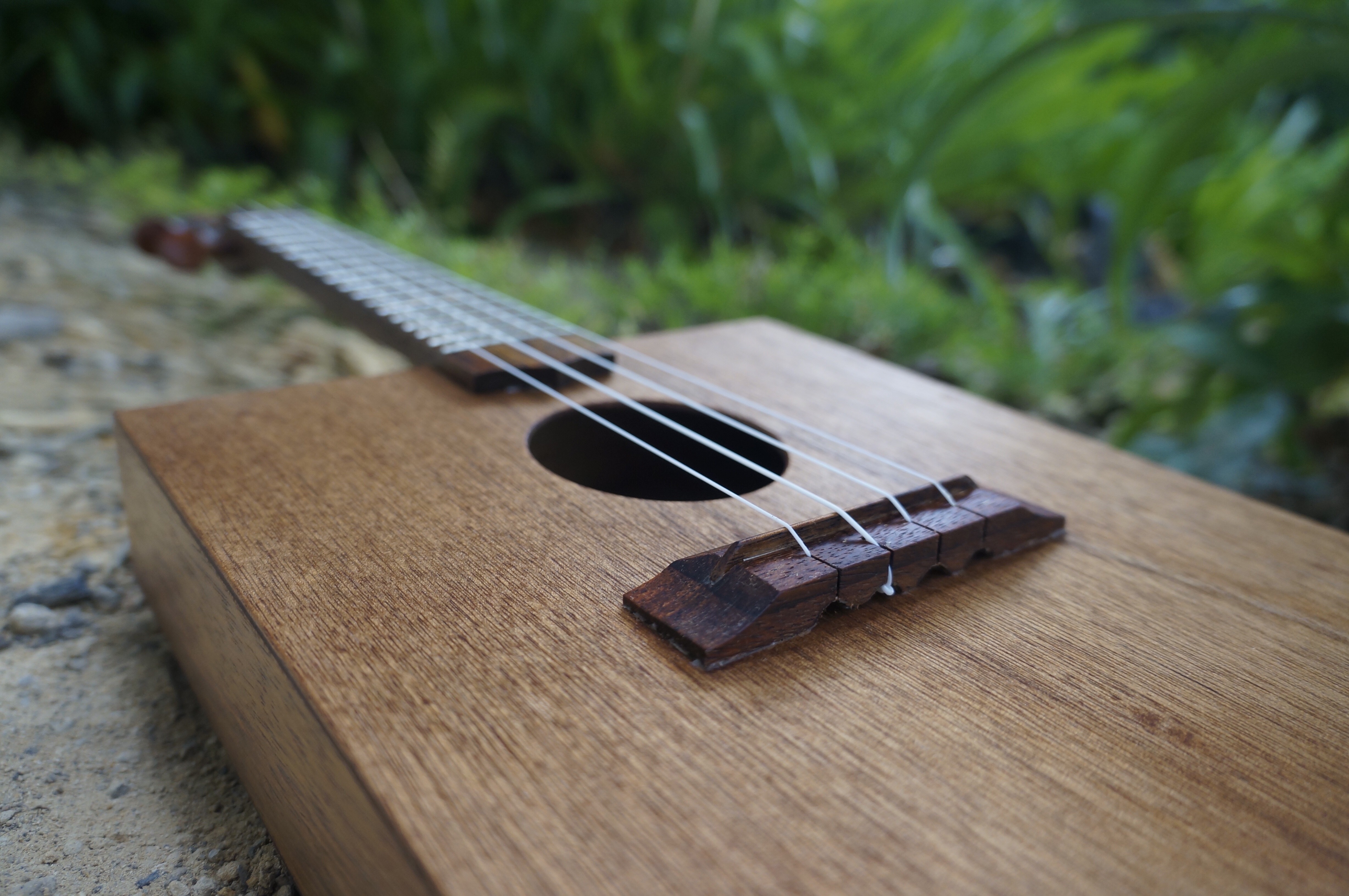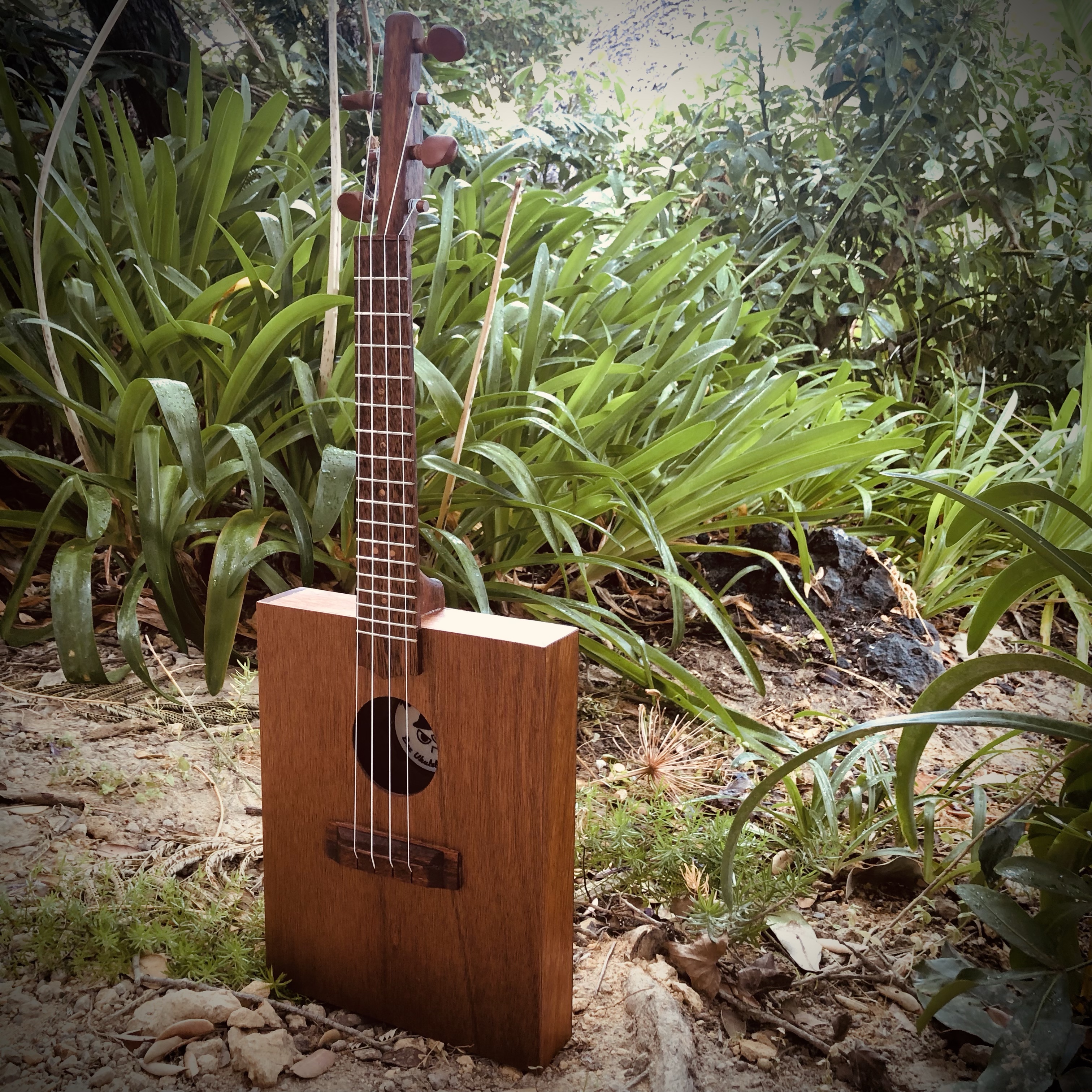 A recent creation influenced by Sam Kamaka Jr’s 1940’s cigar box ukulele.