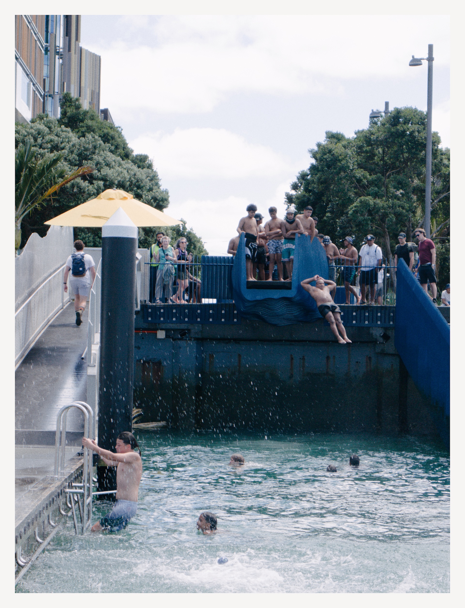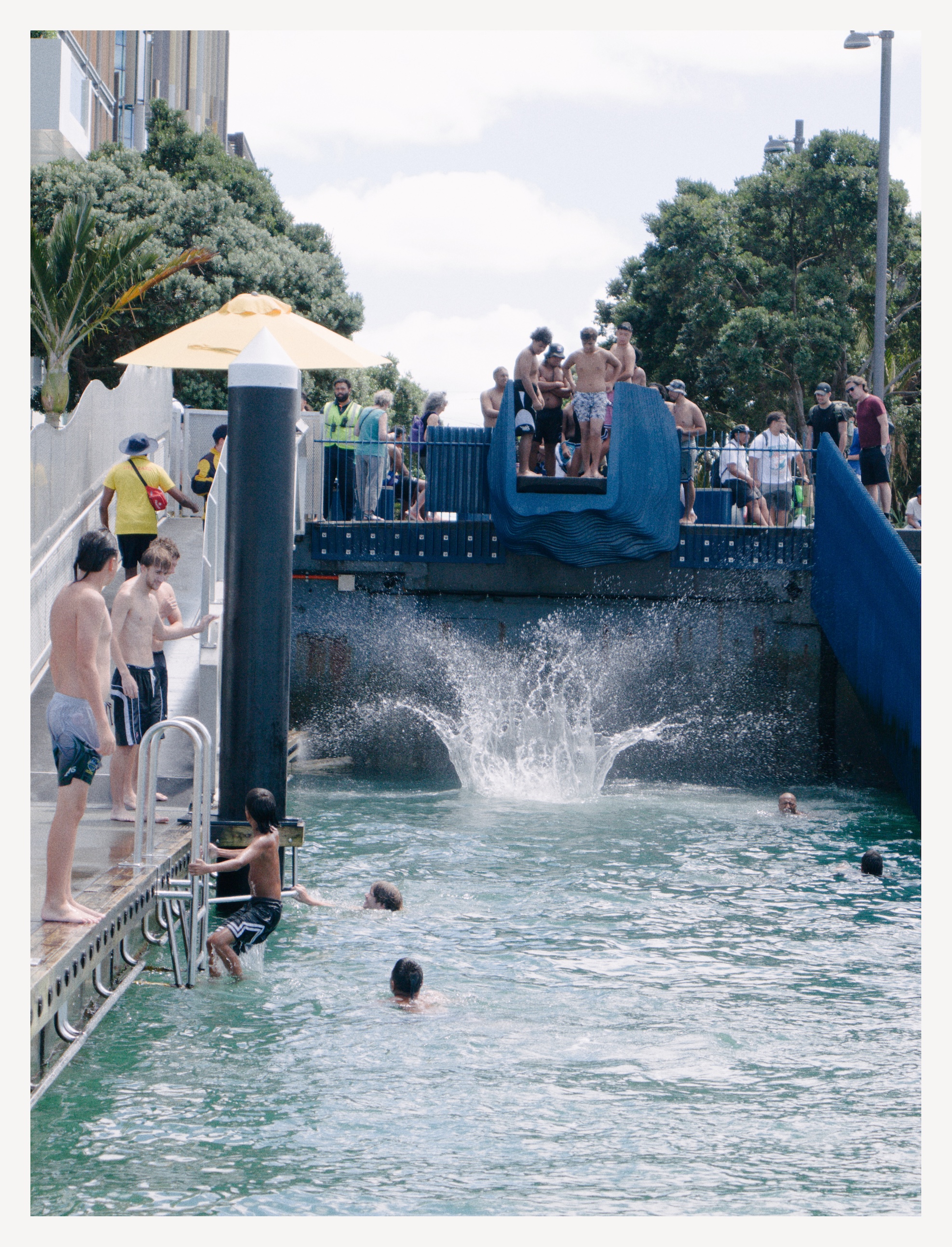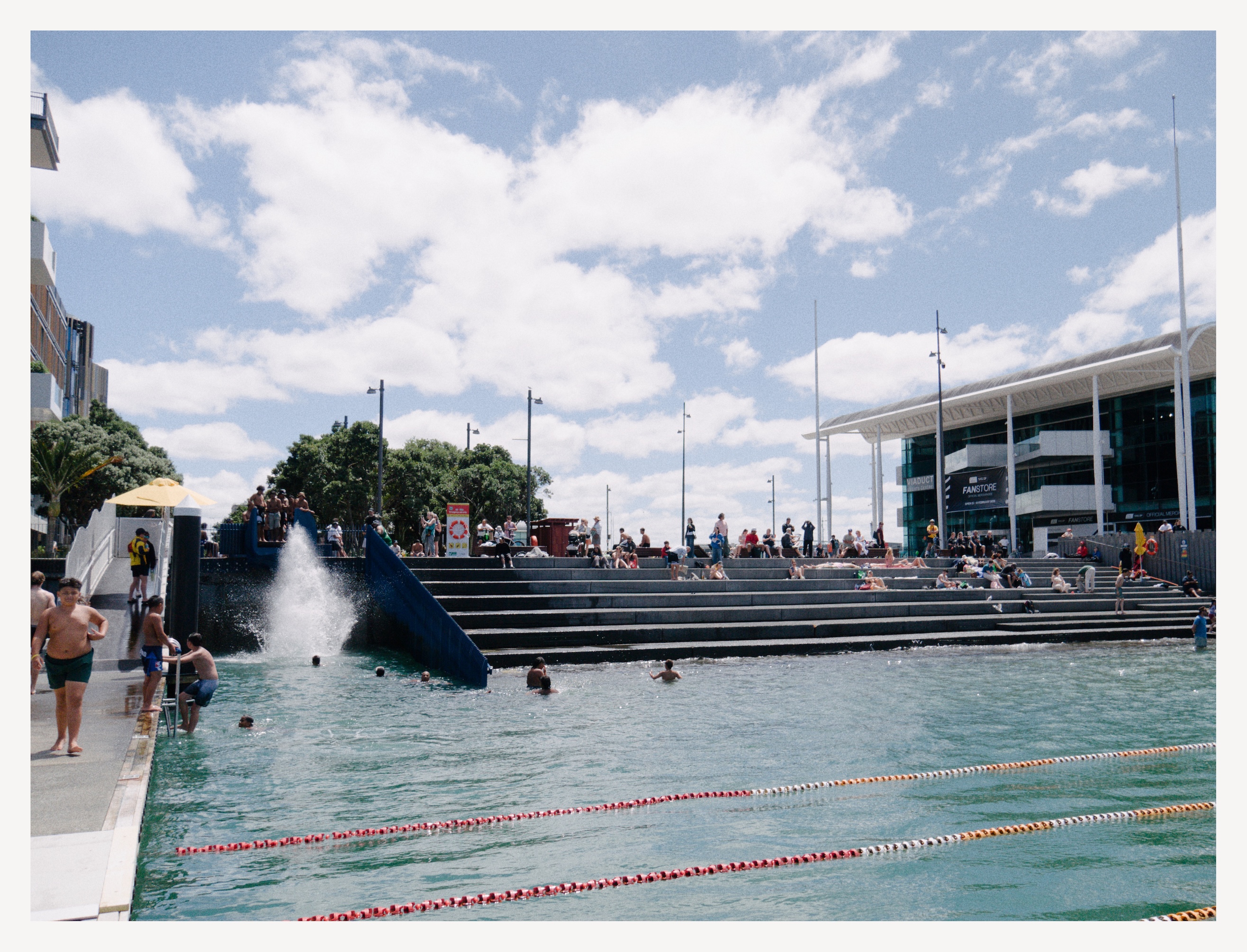 One thing going on was practice for the Manu World Champs in the relatively new inner city sea swimming area. A great addition for inner city folk, it offers a fenced off, life guard patrolled place to swim. In our heavily populated ‘city of sails’ direct swimming in the ocean within the CBD has been limited over the years due to safety. The new setup is nice. Manu world champs? – for those out of New Zealand, this might be renamed ‘Dive Bomb World Champs’ – Manu’s Maori translation is often Bird or Kite – but we also in recent decades referred to a bomb as a Manu also. I remember kids Tombstoning as a kid too – but I think that was more dodgy bombing off rocks and into iffy water holes (the name hinting at the danger).