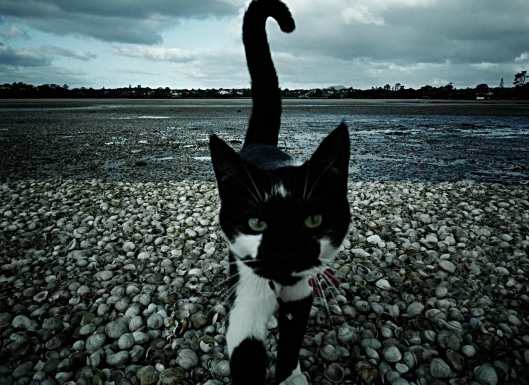 What a long work day! – I didn’t get a chance to snap any images today, so pulled out this one from a few months ago. The beach down the road from us is one of those very shallow, or flat areas. When the tide goes out it stretches quite a way. We were down for a wander when next doors cat suddenly appeared and started running out to sea! As you can see in the background, I was already out quite far when the cat came in for its closeup. Taken on the Ricoh in bleach mode, I upped the sharpness one notch in Gimp as it lost some when I reduced it to internet quality.