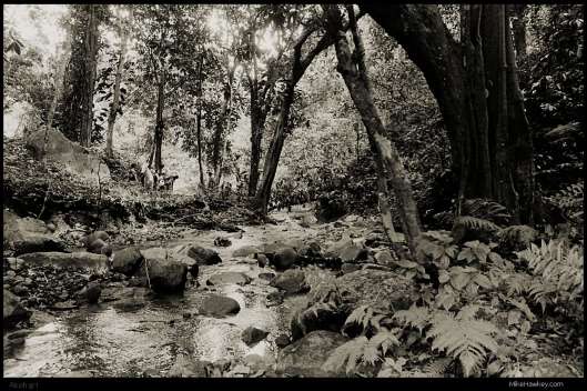Another 35mm film shot from my Ricoh GR1 in the forest of Fiji I walked through to get to a waterfall. Following the river down, we can see the irritated horse I featured a the day before last (I think its the one anyway), before the river disappears into the forest.