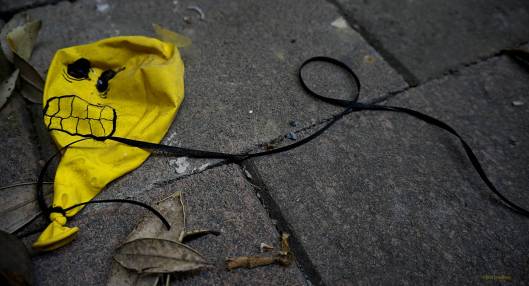 After mentioning I had been house bound for the past few days recovering, and not been out shooting, I ran into today’s image ‘Deflation’ literally outside my front door. With Halloween the other day, we had put up some decorations, inviting trick or treaters to come and pay us a call. We had a number of balloons with hand drawn faces floating around the yard, the above poor fellow (if one can call an object a fellow) ‘deflated’ on the ground.