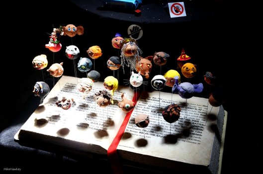 As well as a mass of interesting art from various artists, the event I went to over the weekend also had a massive children’s section housed in one of the old wartime underground barracks. I always enjoy looking at children’s art – it can have less bounds and sometimes a simplistic yet sensible look at the work around us. Probably not today’s piece. I once again failed to record who or which local school made ‘Book Heads’, but it caught my eye for two reasons. The main reason was the amazing filtered light that was cast upon its pages. We were underground with minimal lighting, but above this piece was a small ground level window. Secondly, I just loved all the work that had gone into creating the heads of various characters from well know books.