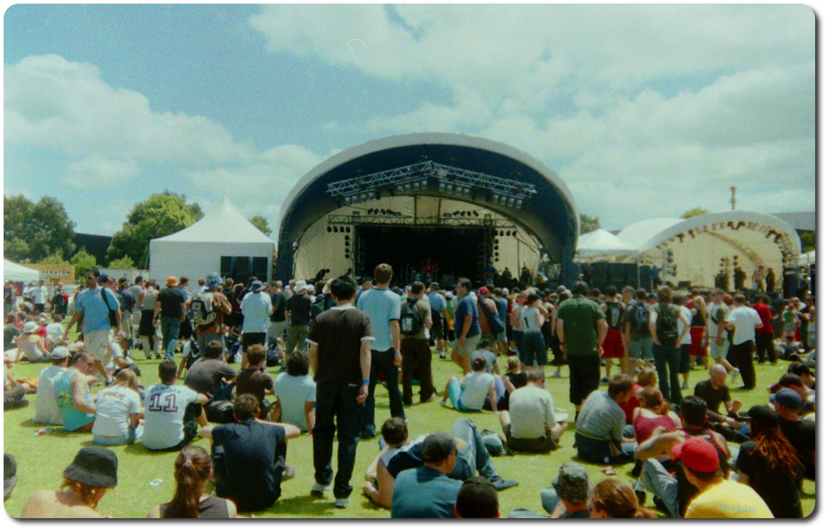 I love how photos bring back memories. They don’t have to be good photos – just simple images that spark that memory buried deep inside the mind. Todays shot was taken years ago at one of NZ’s biggest music days of the year ‘Big Day Out’. I cant rightly remember the year, but it was some years ago. I was equipped with a cheap plastic point and shoot throwaway camera. My friends, central in the image were walking in a line towards the stage as I held back, lifted the plastic camera to my eye, and ‘click’.
