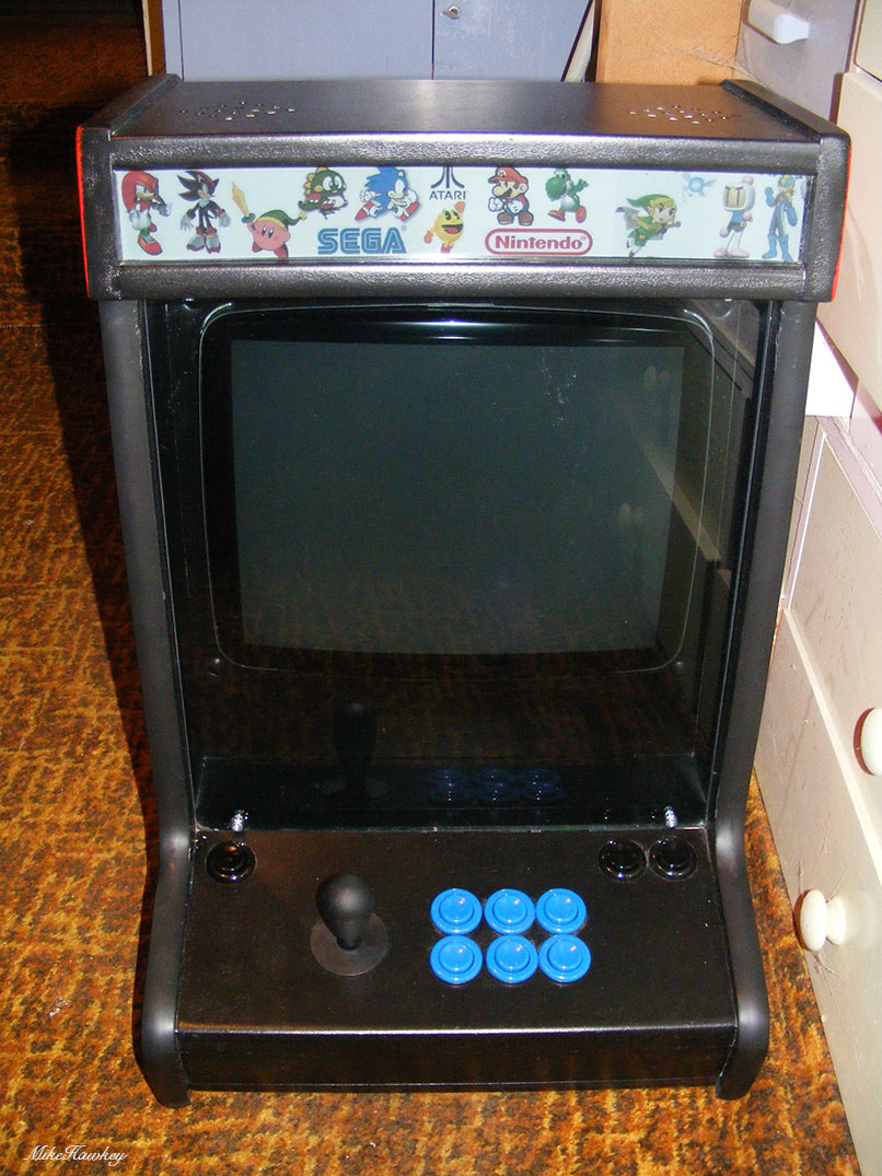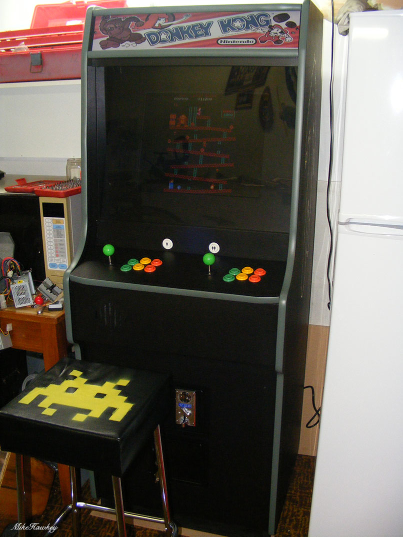 Powered by fairly low power computers, they can run the classics from the 70’s-90’s. The above image (again, apologies for the quality) is of my final system I made, my Kong/Invader cab – based on original Donkey Kong plans, slimmed down due to my use of LCD rather than CRT, and influenced by Space Invaders in design. I have it playing all the classics, as well as emulating original NES, Sega and Atari consoles (still need to one day add Commodore 64). Im pretty pleased with it – build quality wise, its probably better than a lot of the original cabs.