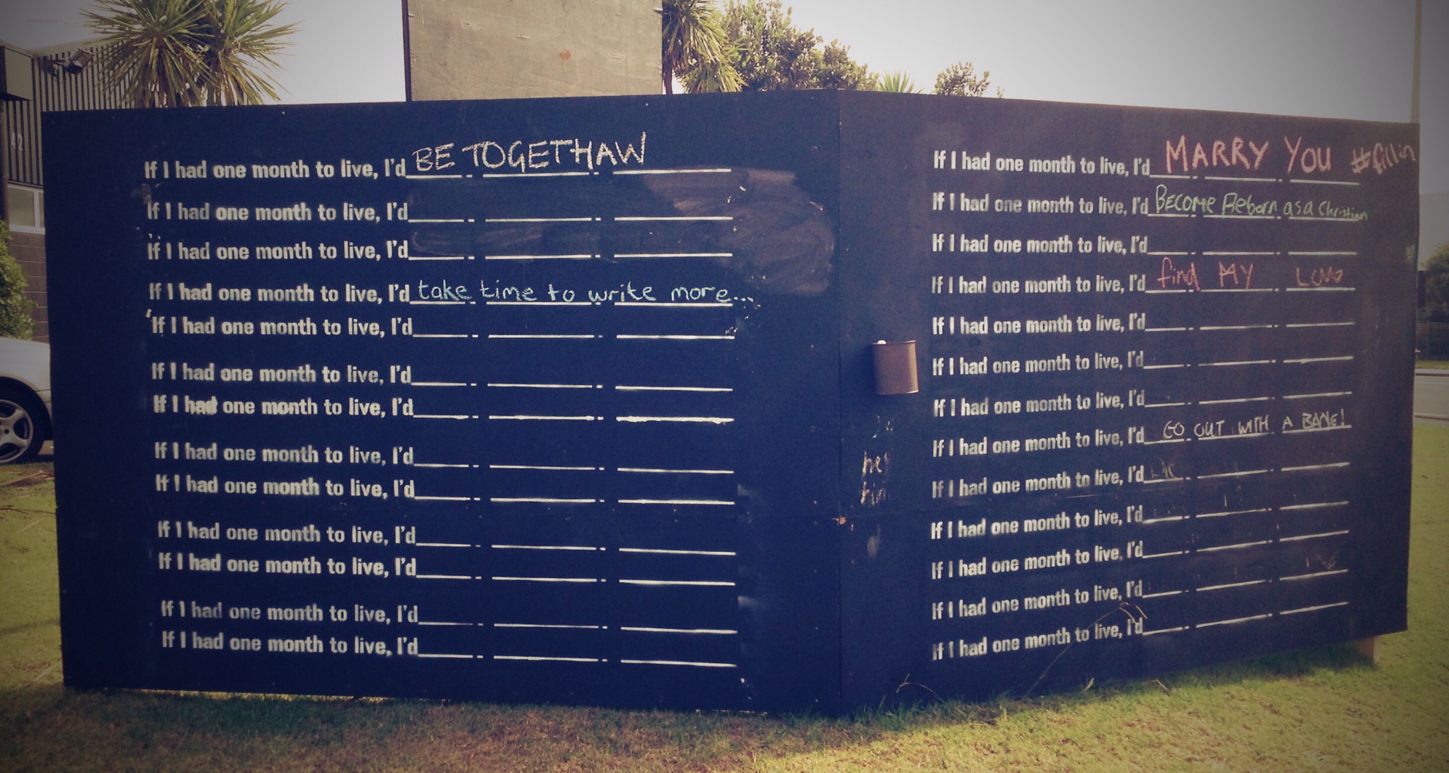 Passed this thought provoking sign when cycling home from work today. It’s one of those great thought provokers that essentially asks where you want to be and why not be doing it now. The fact it was a chalk board makes it one of the best signs I’ve seen in a long time…that said, no idea if it was marketing something!…