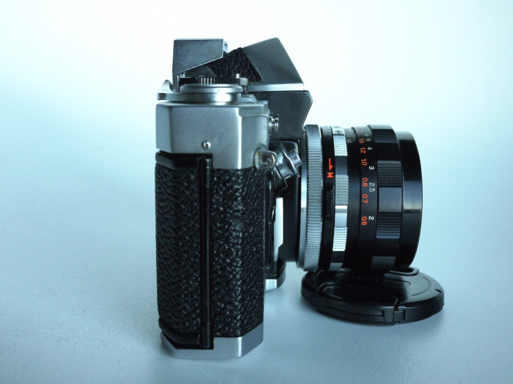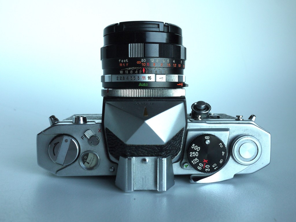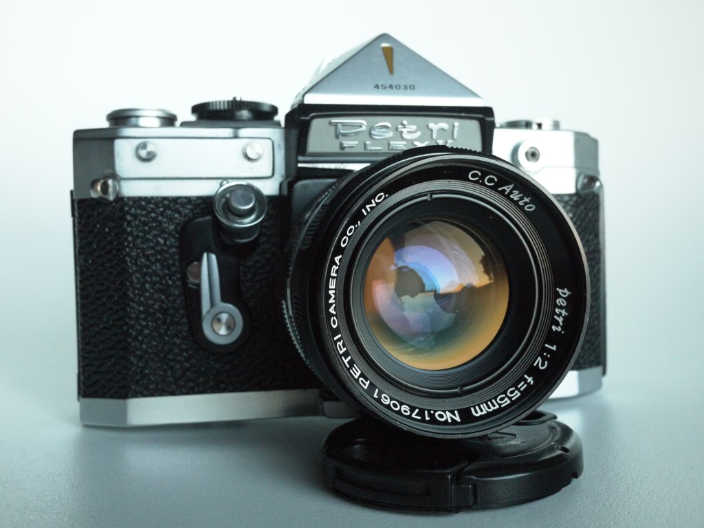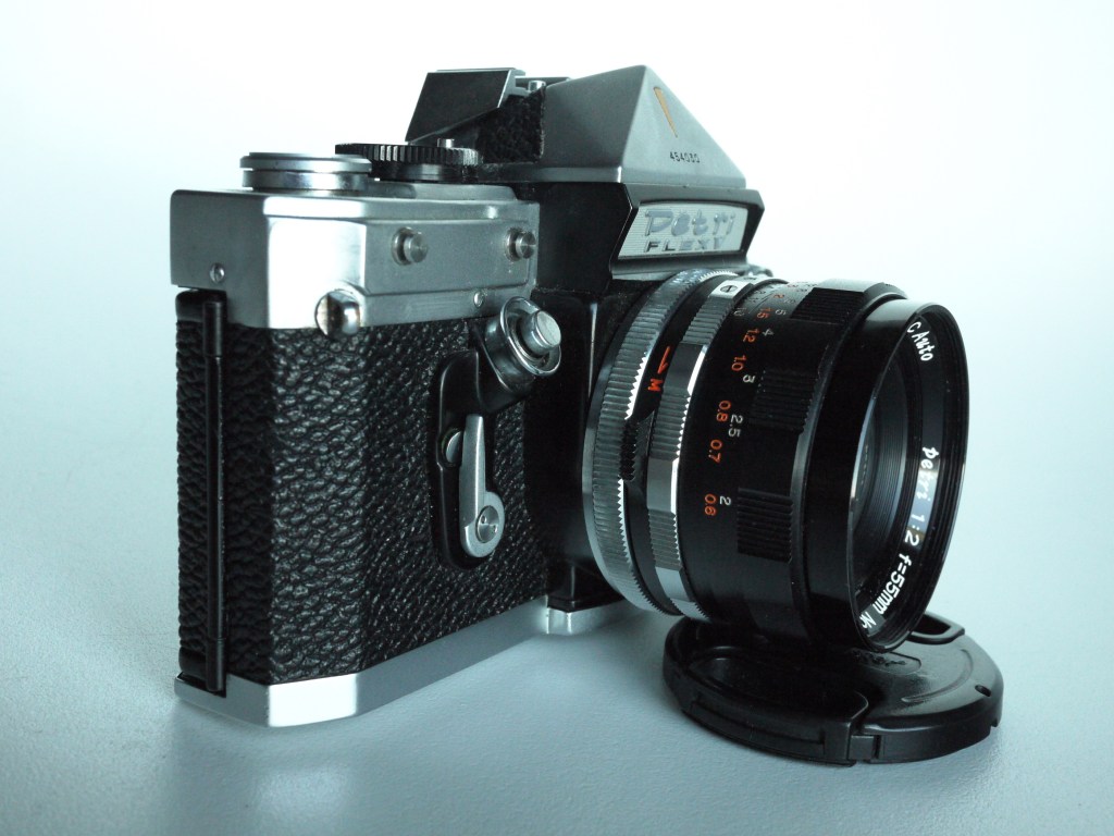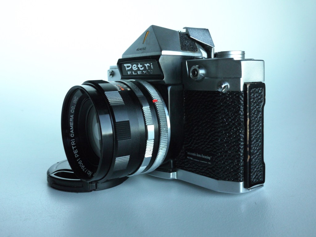 Until fairly recently (at the time of writing this), I was the custodian of a wonderful Petri Flex V. Made in the early 1960’s the Flex V was a unique design in its time as instead of a combination of usual gears, the innards of the Petri are based around a single long camshaft with a large torsion spring wound around it. You can feel this difference in use I think – something about it feels more direct somehow. Its a nice SLR to drive.