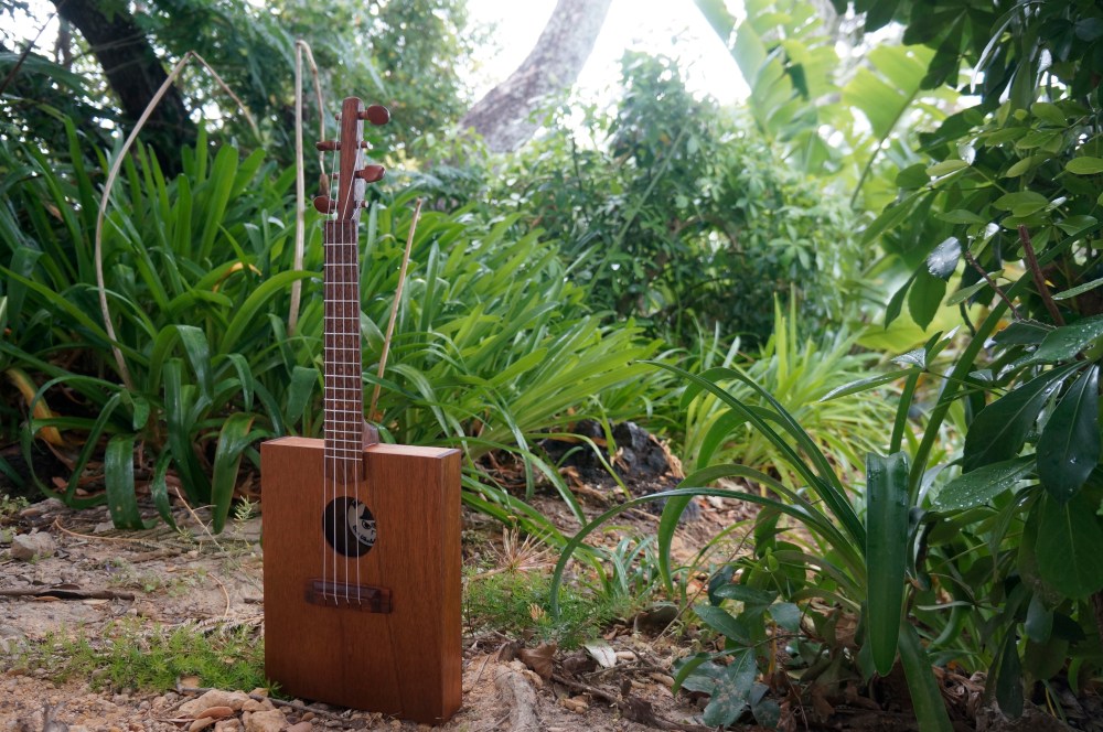 A recent creation influenced by Sam Kamaka Jr’s 1940’s cigar box ukulele.