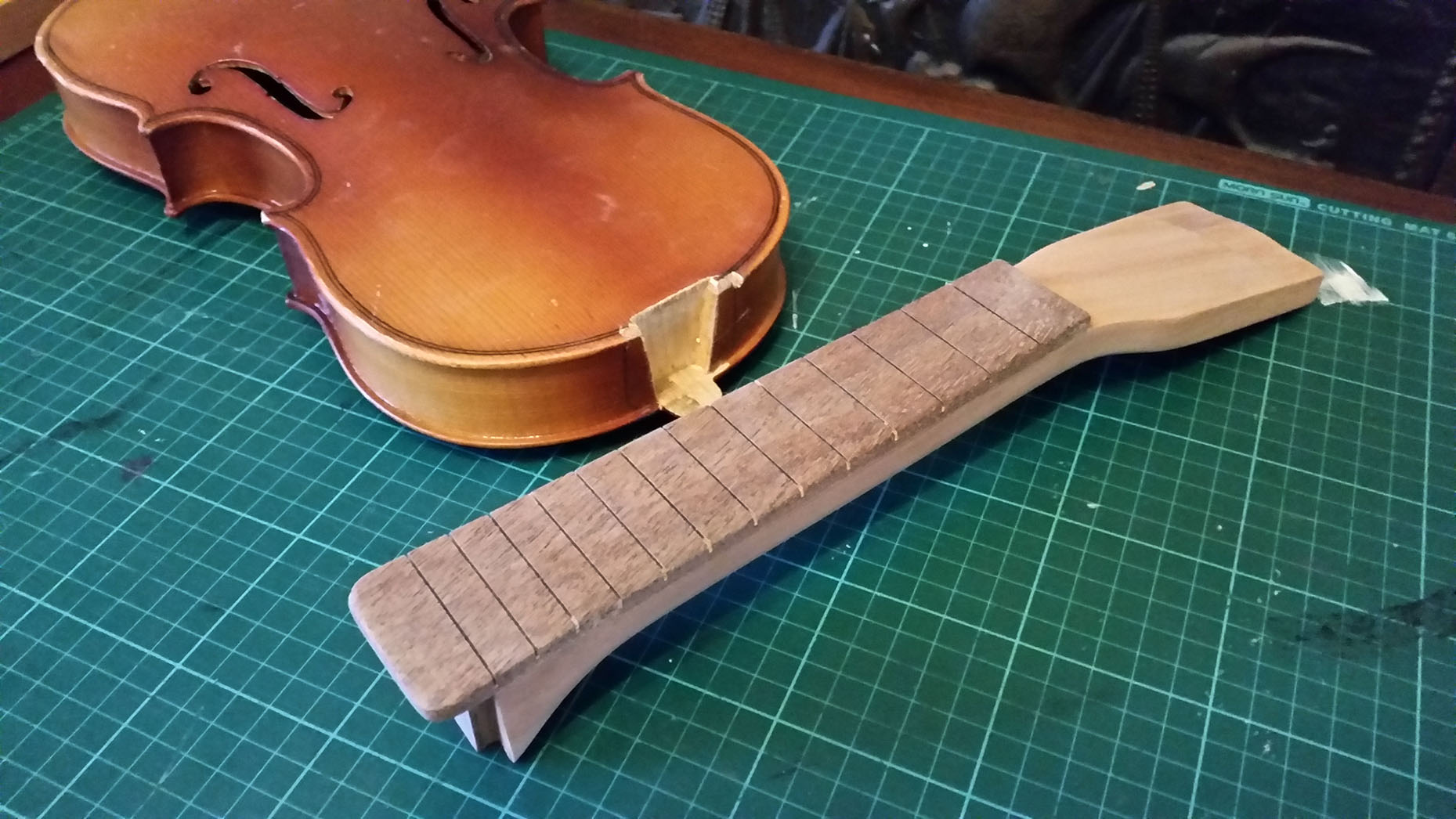 Before upsetting anyone greatly (but still maybe a little), the Violin is a cheap Shanghai Lark. Its possible I am doing the violin community a favour ripping into this beast. An thats what i next did. Off with the neck, and time to design and profile a new one.