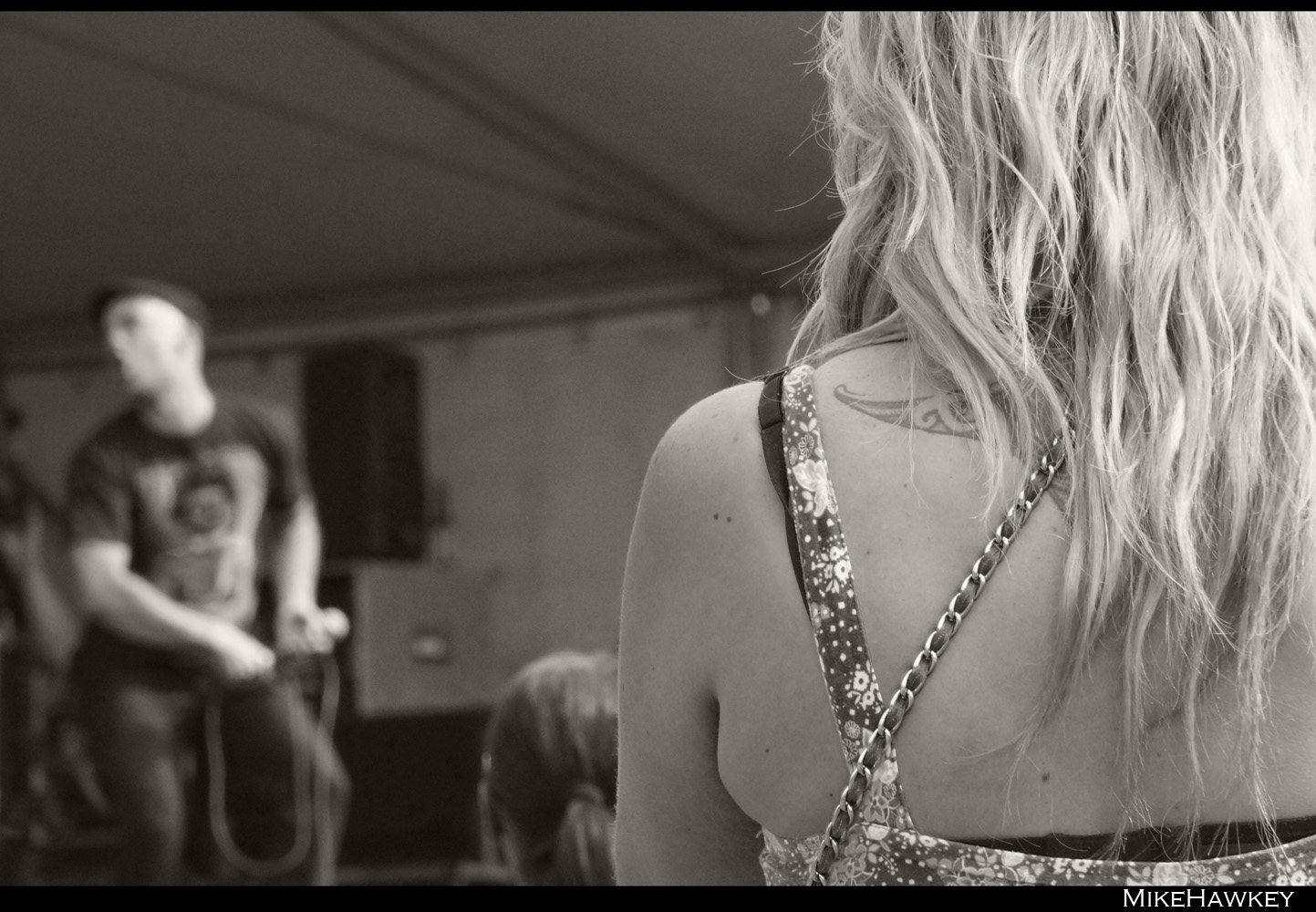 There were a number of people there with their cameras, shooting the bands straight on, avoiding the audience. In todays shot, I looked for a slightly different perspective. Capturing the lead from I Am Giant over the girls shoulder, I think I have caught the moment of the band and audience, yet kept all in the photo relatively anonymous.