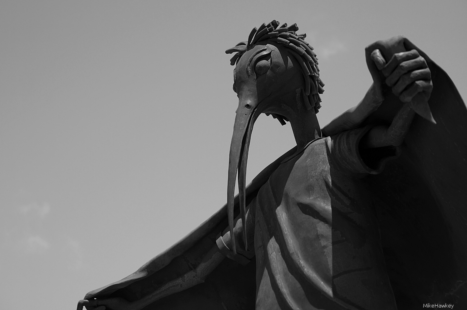 Today’s image, ‘Black, White and Red all Over’ (The artists actual title, not mine- Turtle Donna Sarten) was a beautiful, yet sobering piece that brings about awareness of child abuse and death in the country. As well as the Kiwi I captured on the ground (representing the next generation at risk) the tree also had a large number of Kiwi hanging from the branches (representing those past). Being made of alloy, they chimed in the wind.