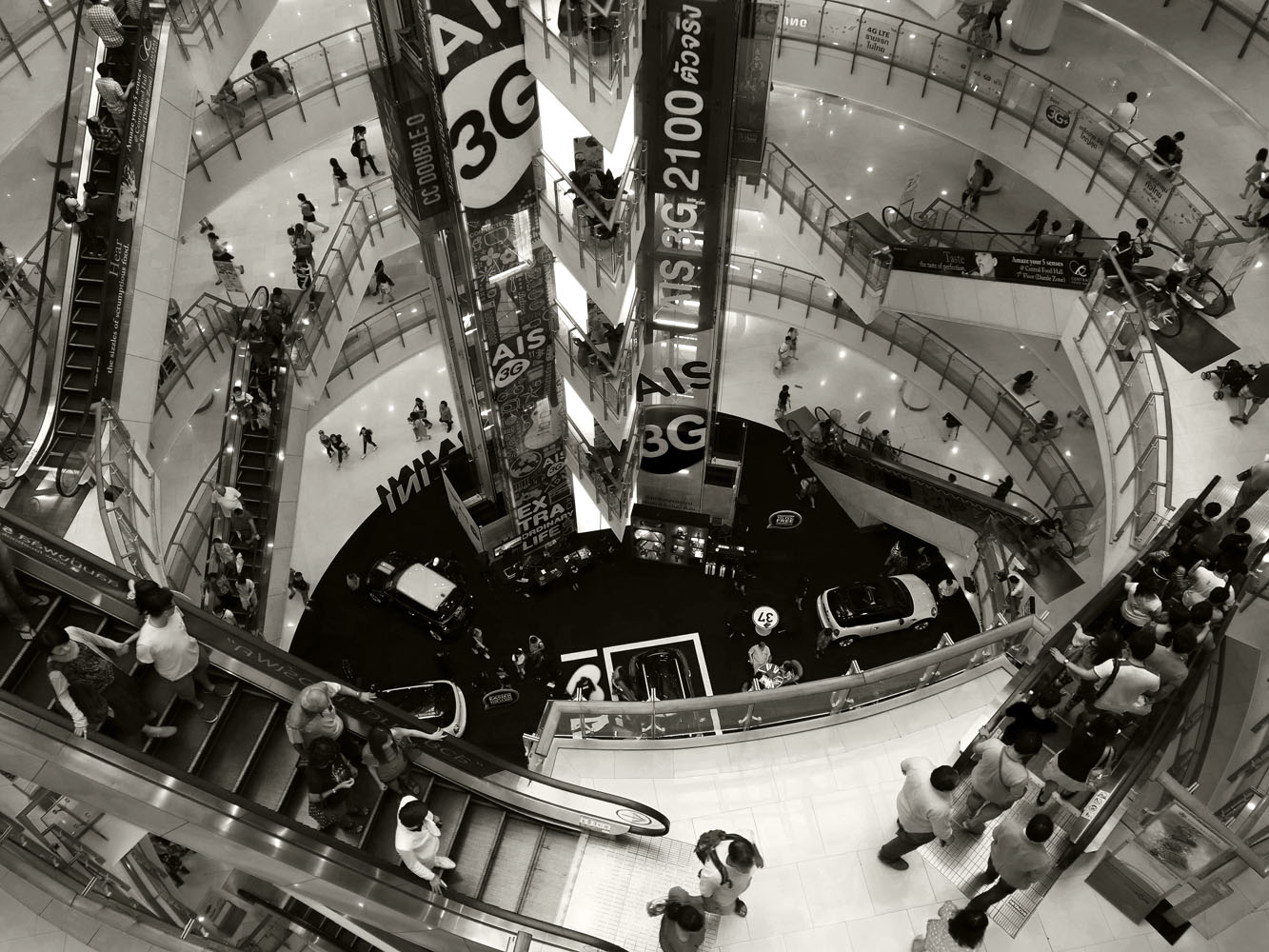 After hours in the air, we set down in Bangkok. Time wise we landed some time after midnight, so the photos came the first day morning looking out over the cityscape. Exploring some of the town, we found ourselves in the World Centre (I think) – a bustling multi story shopping centre.
