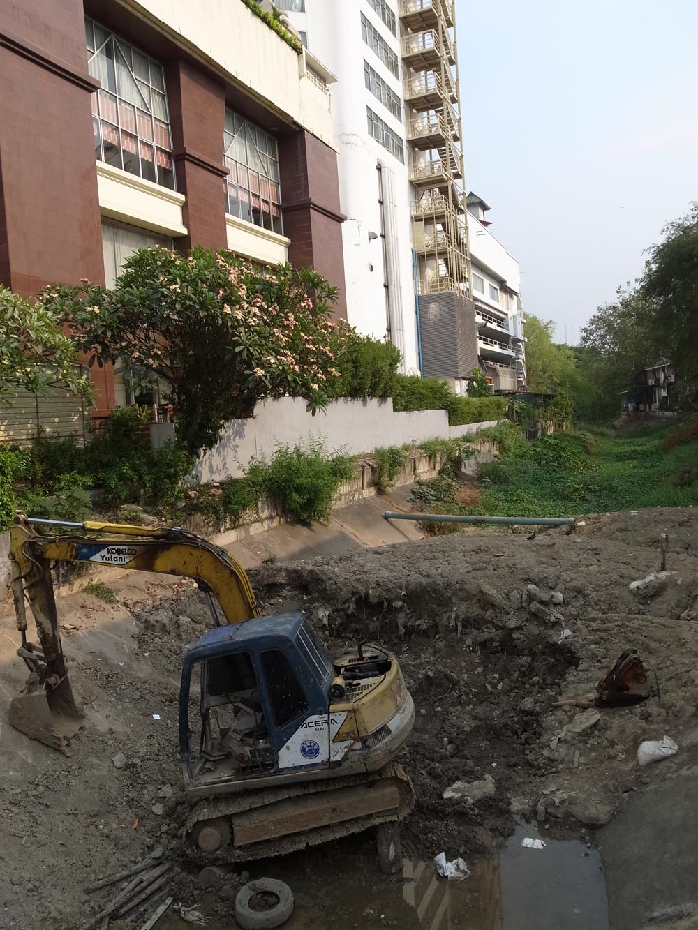 There was a bit of working going on in the river/open drain (once was river?). A little amusing to see this weighty digger using a log on the back section to prop it up.