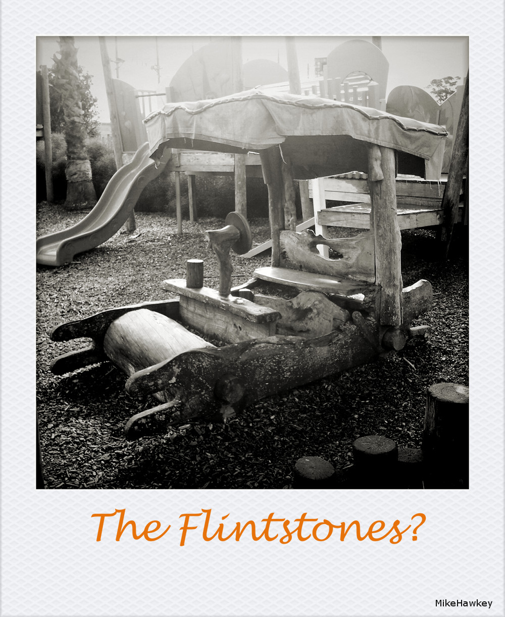 Spotted in a playground, this wagon will either be very familiar, or not familiar at all to some of you out there. A creative remake of Fred Flintstones car, brought back childhood memories for me. To be fair, I was not around for the original 1960’s screenings of this pre Simpsons family, but TV here in NZ re-ran everything for many, many years. I expect it is still on one channel somewhere here.